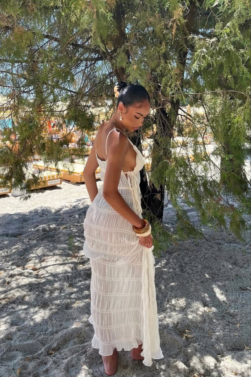 Romantic and ethereal, the Liana Maxi Dress is your go-to for dreamy summer soirées and elegant escapes. Featuring delicate lace detailing with a flattering V-neckline and dainty spaghetti straps, this dress flows into a graceful full-length hem that drapes effortlessly with every step. Feminine, timeless, and chic—it’s designed to make an impression.