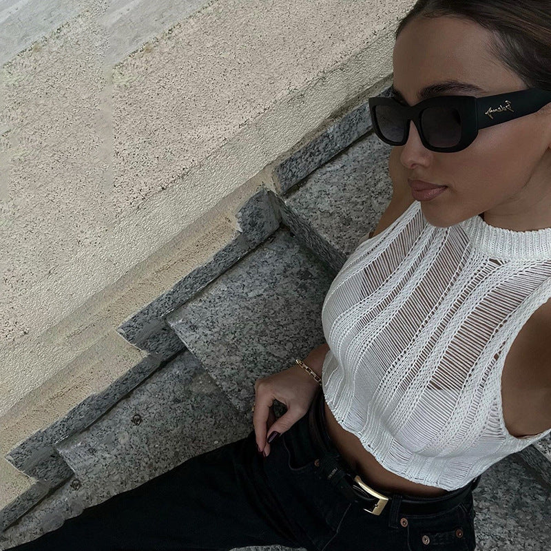 The Janet Set brings elevated edge to your wardrobe with its textured ladder-knit design and sleek silhouette. Featuring a sleeveless crop top with a high round neckline and a coordinating midi skirt, this set delivers a fresh take on minimalist style. Perfect for turning heads at brunch, rooftop drinks, or a night out.